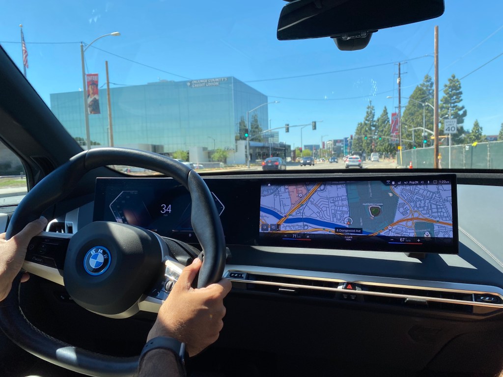 That wasn’t the only attraction on tap here, as there was a fairly full line-up of BMW and even MINI (for the Cooper SE Electric at least) models available to drive on a predetermined loop on the streets surrounding Angels Stadium in Anaheim. I rode passenger side in one of the MINI Cooper SE, but took the driver’s seat in the new iX SUV. Available in both xDrive50 and M60, your choices are plenty fast or way too fast. I chose to test out an xDrive50 as 516-hp seems like enough for a short drive on surface streets. The M60’s 610-hp would only serve to create a higher window for trouble. Unlike the i4’s genesis from a sporty gas vehicle to an even sportier EV, the iX is ground up EV. This means freedom to style the vehicle in a polarizing manner (though the styling is certainly growing on me), but it also means a low EV-esque cowl and a vehicle that won’t be mistaken for anything else.